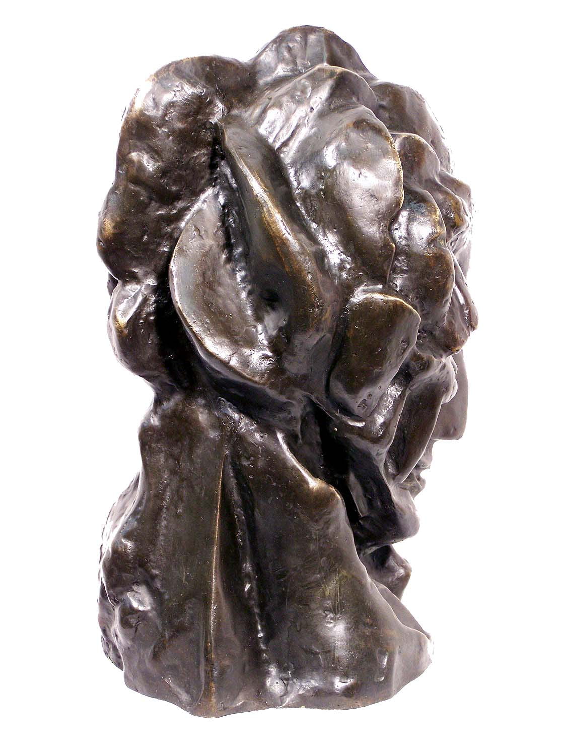 Seen from the front, the sculpture reveals a deliberate tension between solidity and fragmentation, with sharply defined ridges forming the forehead, eyes and nose. The dramatic planes carve out a rhythmic pattern that forces the viewer to move around the work, seeing new relationships between light and shadow with every angle. The mouth appears both serene and enigmatic, suggesting an inner life that is simultaneously obscured and revealed. This dynamic complexity is characteristic of Head of a Woman Picasso, where the face becomes a landscape of shifting forms rather than a single static expression. The bronzed surface enhances these variations, allowing the intricate modelling to convey psychological depth through its changing reflections.
